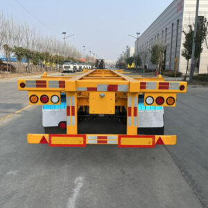 The 3-axle container skeletal semi trailer adopts high-strength steel to construct a frame-type chassis. By optimizing the I-beam section structure (such as the flange plate design of 14mm at the top and 16mm at the bottom) and the automatic submerged arc welding process, while ensuring the torsional rigidity of the main beam, a 10% to 15% reduction in self-weight compared to traditional models.